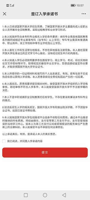阅读入学承诺,勾选“我已阅读,并同意入学承诺内容”,进入签名确认环节。