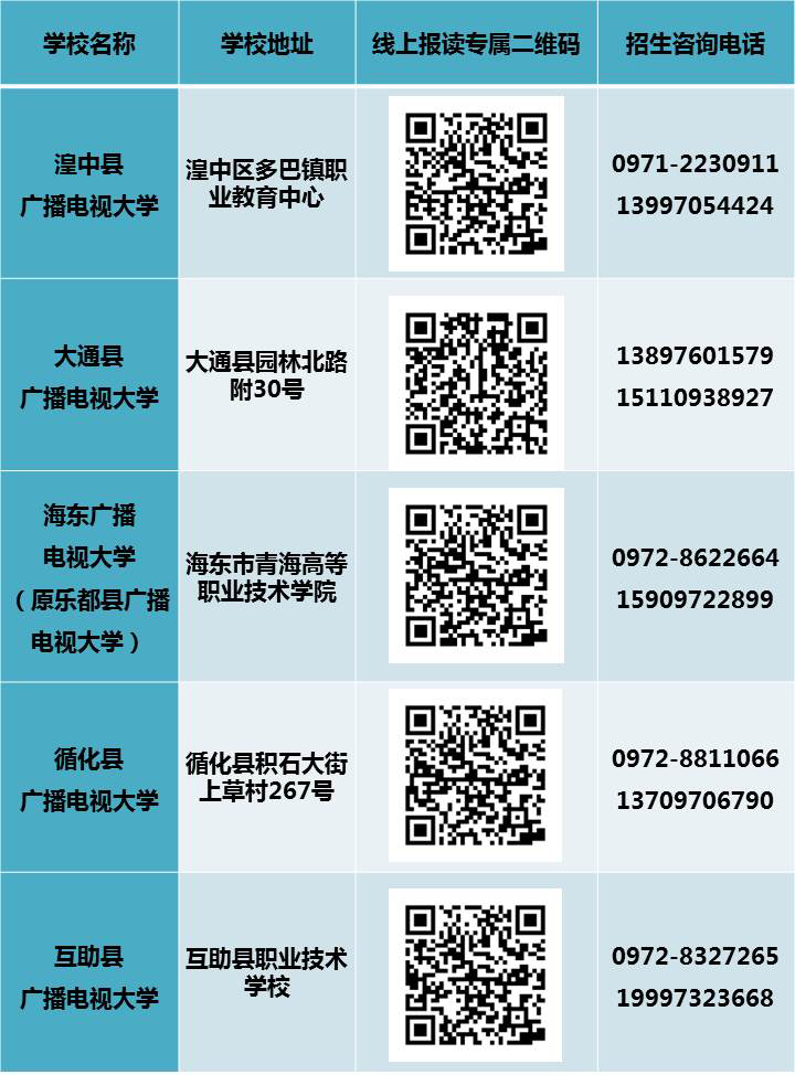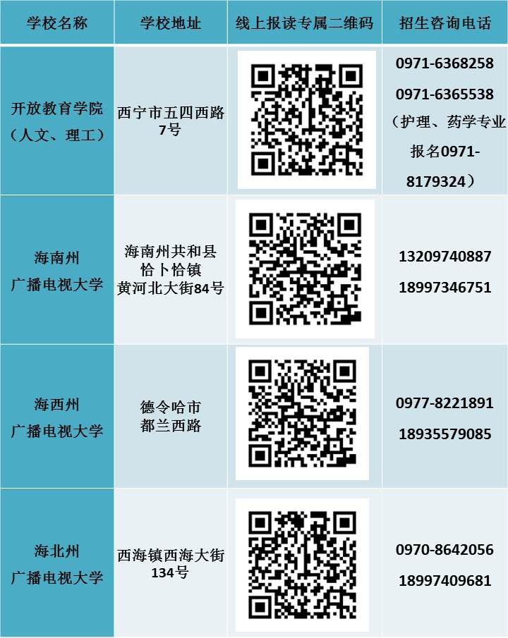 为应对新冠疫情影响,青海开放大学2022年秋季开放教育招生报名将提供线上报名系统,请报名学员扫描所在地广播电视大学线上报读专属二维码,按照提示流程填报上传报名资料,提交后务必咨询所报电大确认才能确保完成报名。