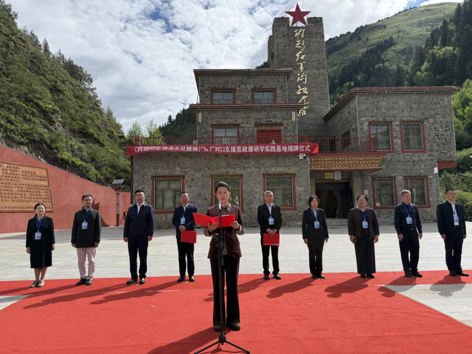 为深入贯彻落实习近平总书记考察青海重要讲话精神,推进新时代思政教育、深化“1+7”对口支援教育帮扶,6月18日,“跨越时空・传承长征精神”“1+7”对口支援思政课研学实践基地揭牌仪式在青海省果洛藏族自治州班玛县红军沟举办。青海开放大学牵头北京、天津、上海、江苏、浙江、山东、无锡8家开放大学共同揭牌。