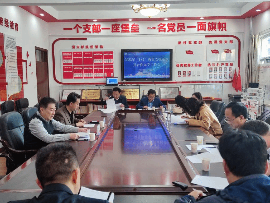 会上,教务处通报了2023年度“1+7”教育支援帮扶及合作办学年度计划整体落实情况,各工作对接人员逐一汇报了工作完成情况。