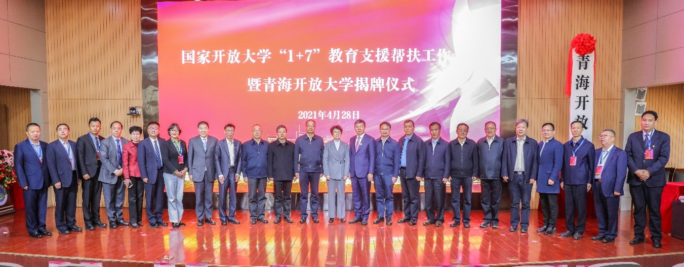 2021年4月,在教育部和省委、省政府的领导下,在省教育厅和国家开放大学的支持下,国家开放大学携领北京、天津、上海、江苏、浙江、山东、无锡等7省市开放大学对口支援青海开放大学和各市(州)广播电视大学,形成了“1+7”对口支援机制。近两年来,各援青学校从师资培训、人才培养、特色专业和优质资源建设、科学研究、老年(社区)教育、信息化建设等方面,组团式完成帮扶项目120多项,支援资金830余万元。