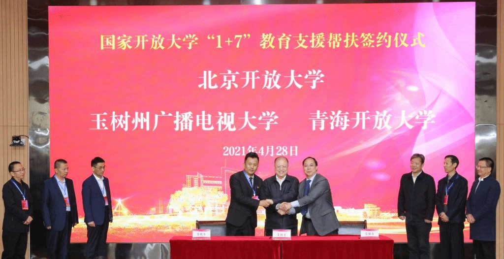 4月28日,青海开放大学揭牌仪式暨国家开放大学“1+7”教育支援帮扶工作会议隆重举行。省政协副主席王绚和国家开放大学党委书记、校长荆德刚为青海开放大学揭牌。国家开放大学携手北京、上海、天津、江苏、浙江、山东、无锡7所开放大学,与青海开放大学及六州和海东广播电视大学签署了“1+7” 教育支援帮扶协议。省政府副秘书长王述友出席会议,省教育厅副厅长梅岩主持会议。