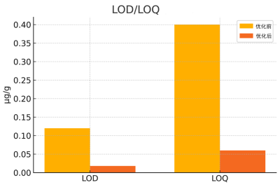 在质量控制方面,通常在每批检测中设置空白对照、仪器检出限空白以及质量控制样品来监测方法的稳定性与灵敏度。QC样可以是含已知浓度目标杂质的模拟基质溶液,也可由当前检测的实际药物批次中选取代表性样品并以参考方法测定的结果作为对照。当在检测过程中发现QC样的测定结果偏离预期值超出控制范围,说明该方法可能出现系统误差或仪器故障,需要及时采取纠正措施[11]